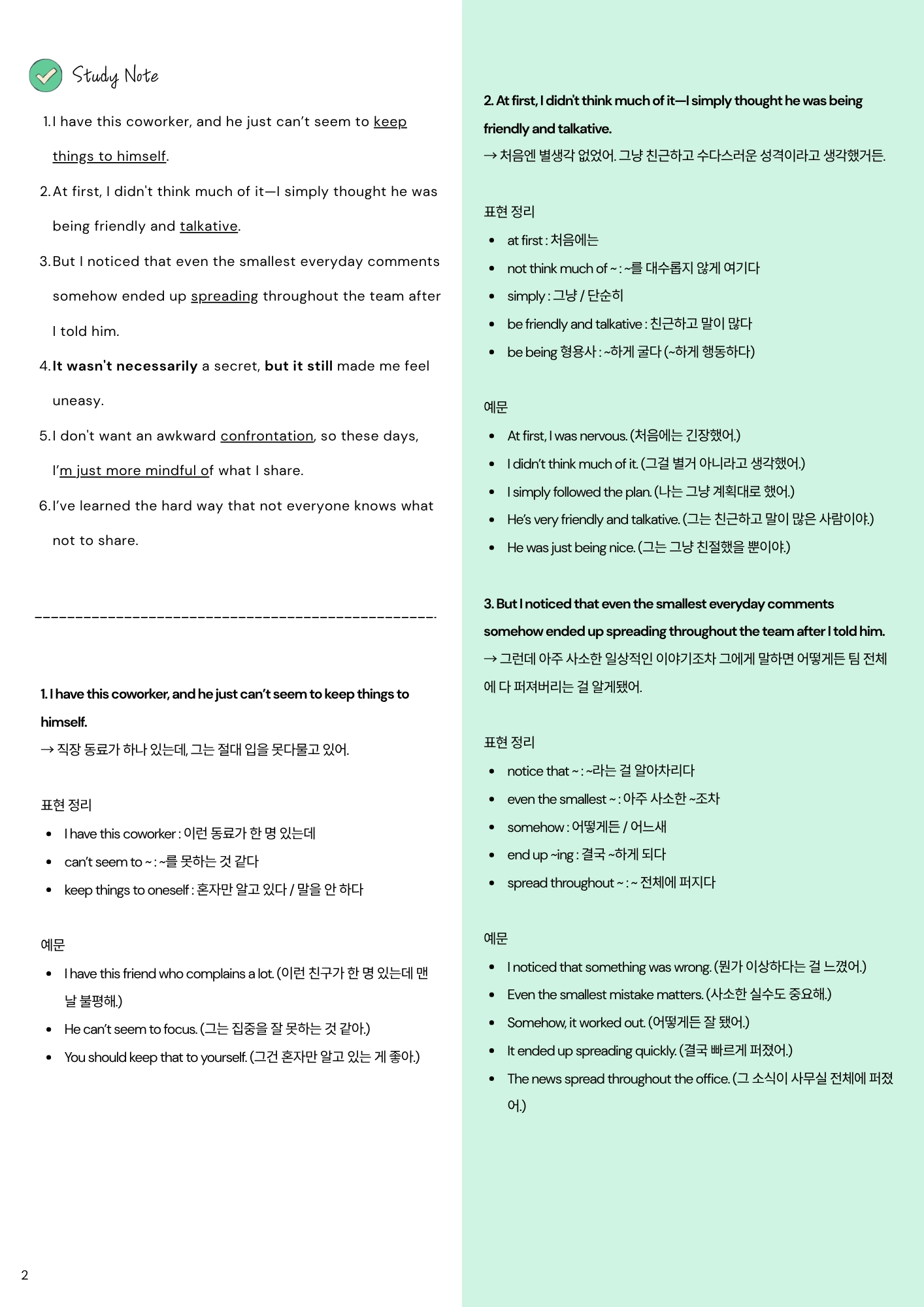 나는 내가 하는 말을 신경 쓰려고 해.