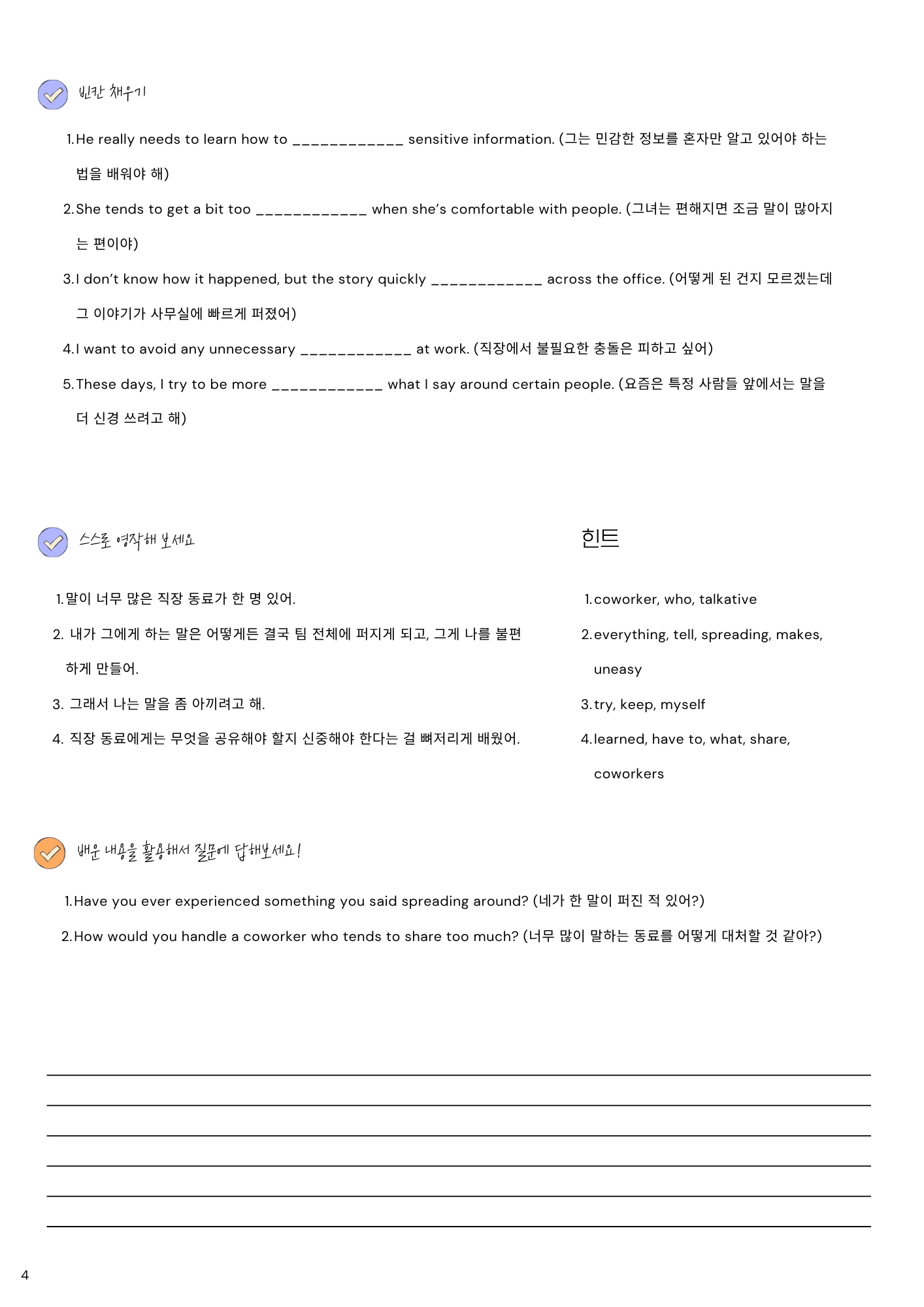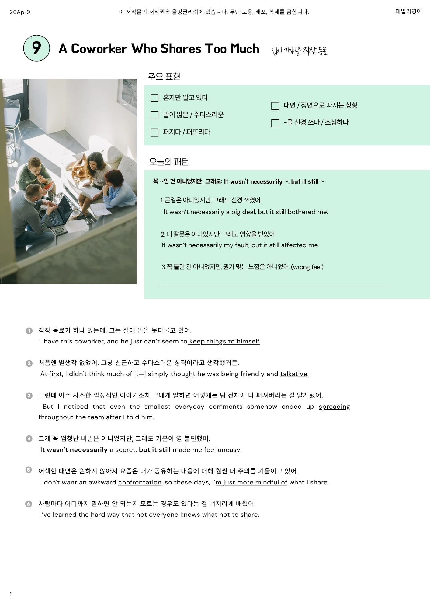 나는 직장에서 그렇게 말이 많은 편은 아니야.